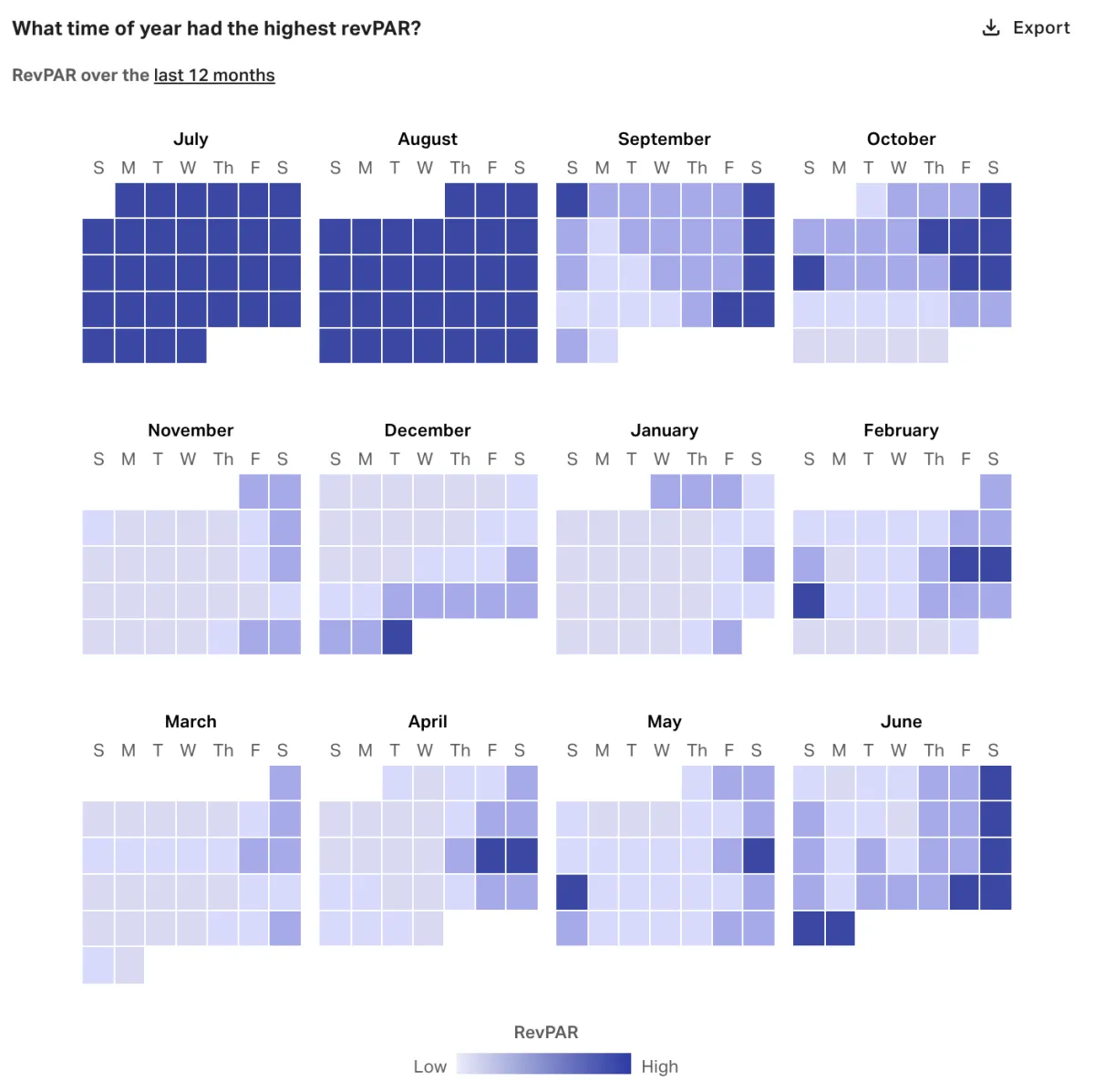 Below is data extracted from AirDNA. We analyze each property by looking at the yearly average performance data and our last years data to similar properties by bedroom, bathroom, quality, and guest count.