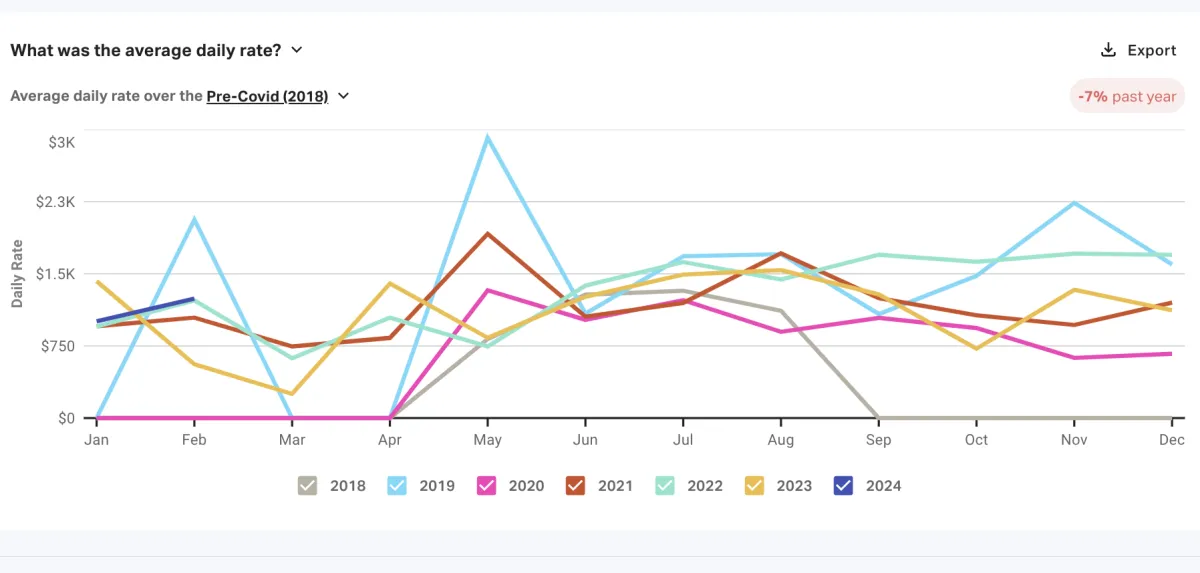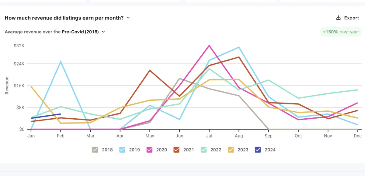 The graph illustrates how much revenue similar listings to your property have earned per month over the last 6 years.