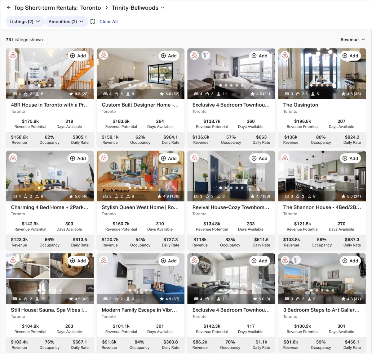 Below is data extracted from AirDNA. We analyze each property by looking at the yearly average performance data and our last years data to similar properties by bedroom, bathroom, quality, and guest count.